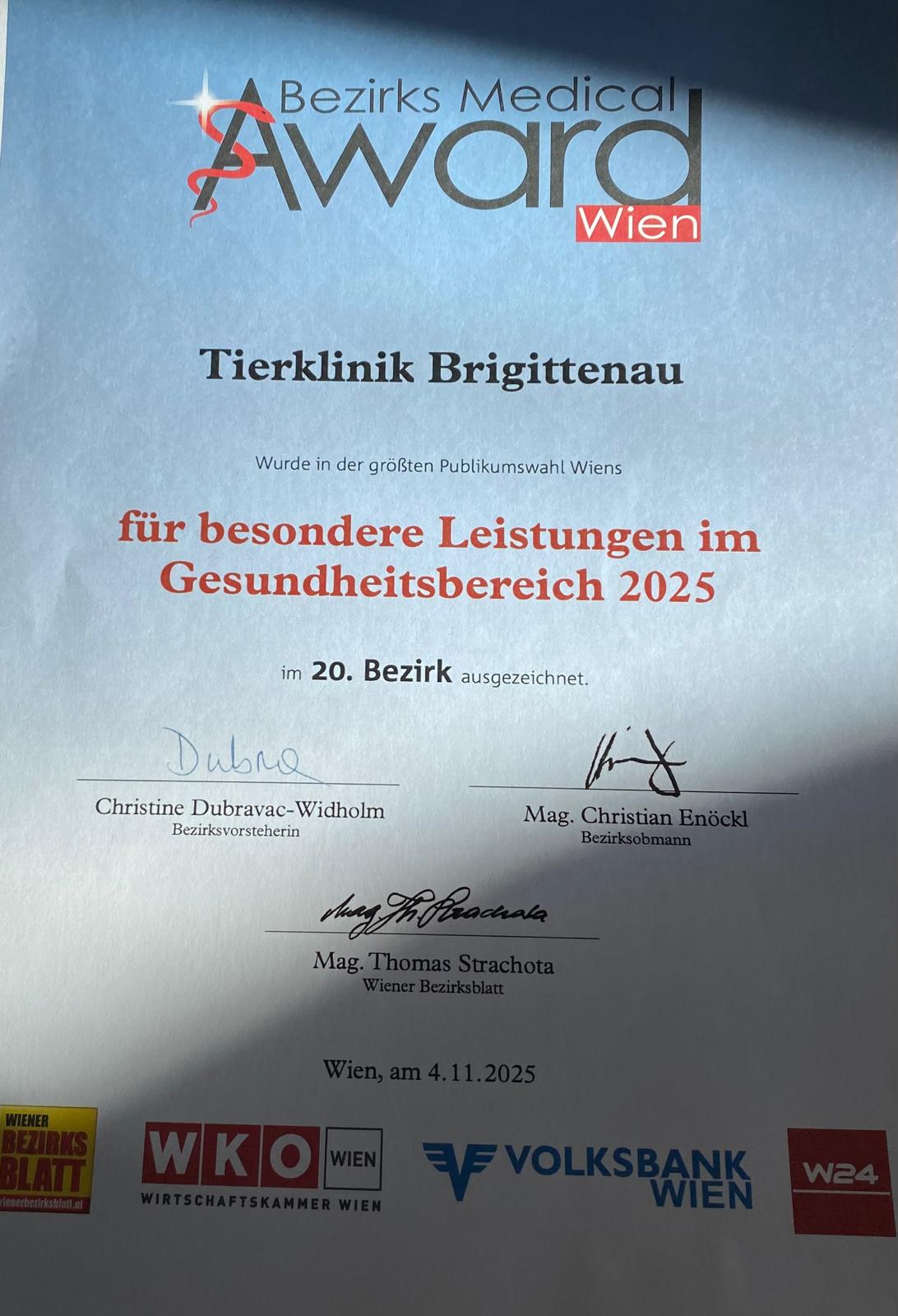 Wir sind stolz, dass wir auch 2025 mit dem Bezirks MEDICAL AWARD der Brigittenau augezeichnet wurden!