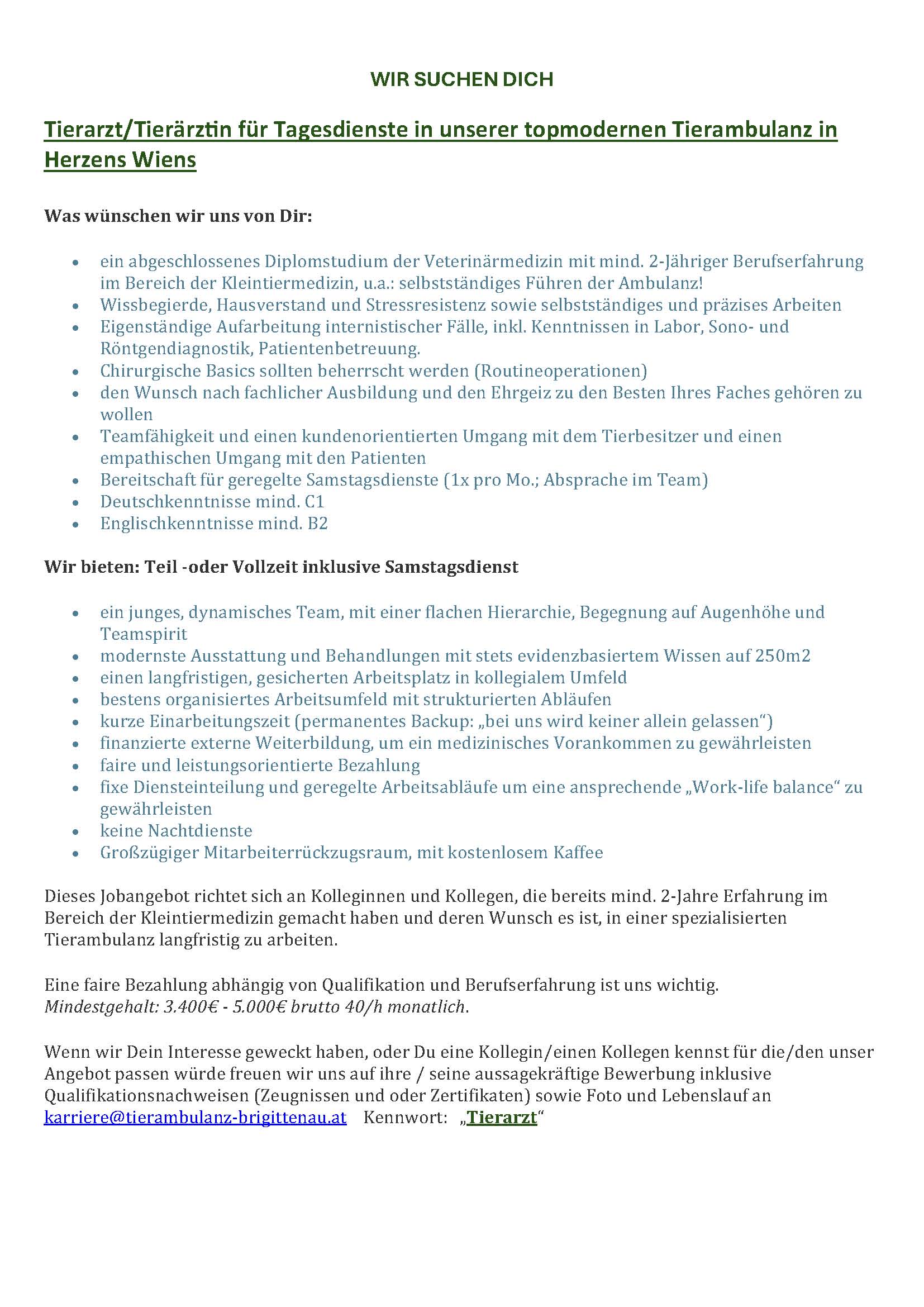 Tierarztstelle in topmoderner Tierambulanz im Herzen Wiens