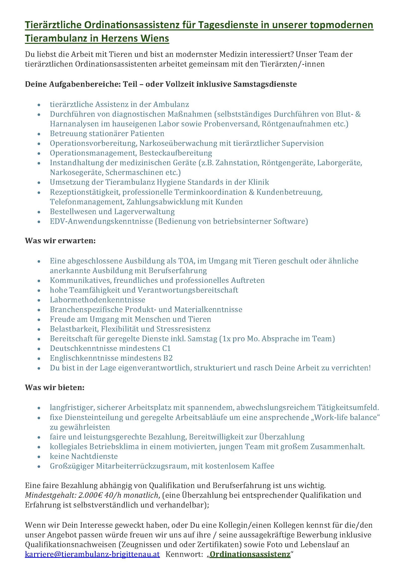 Tierärztin/Tierarzt/Ordinationsassistenz